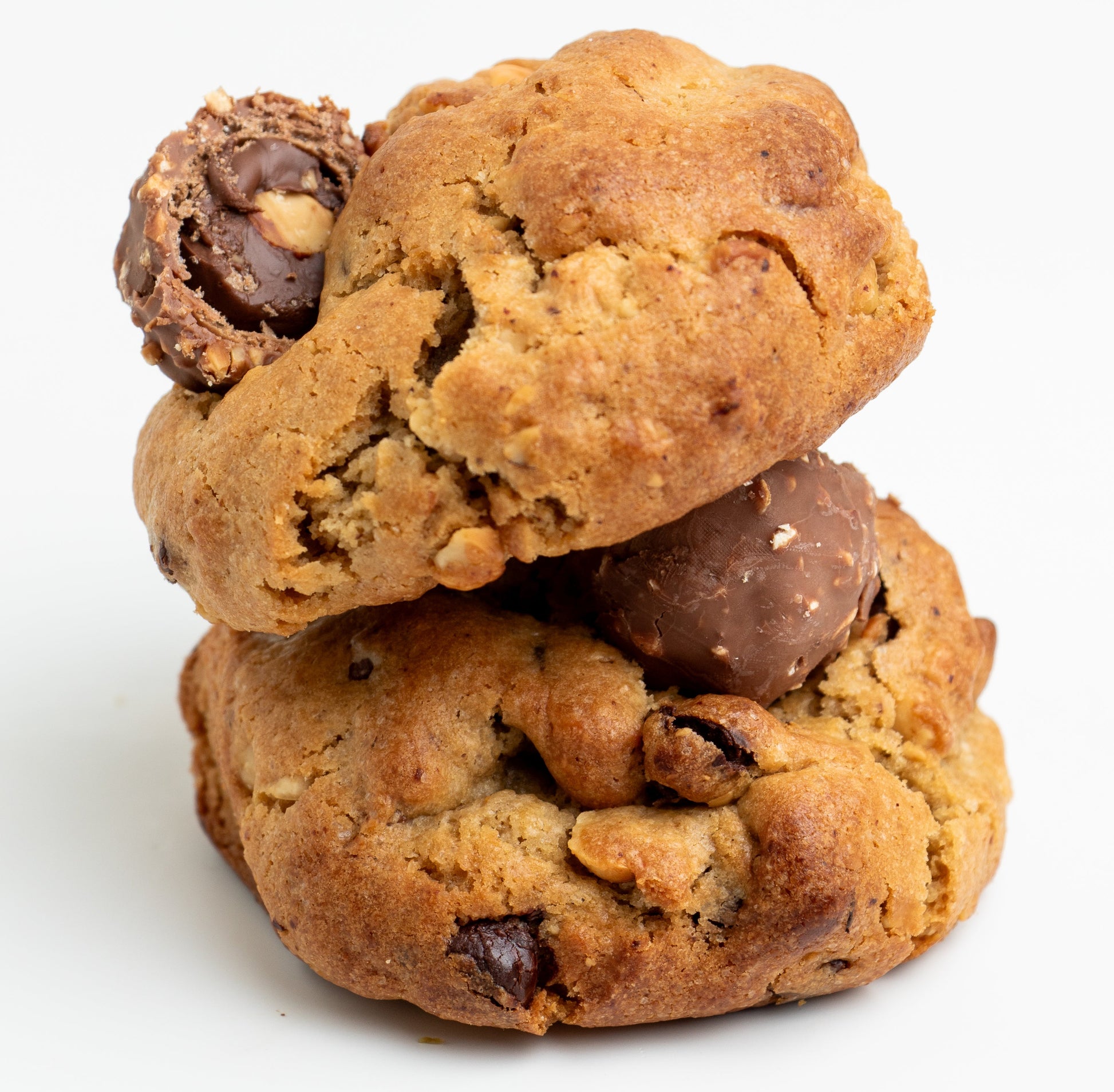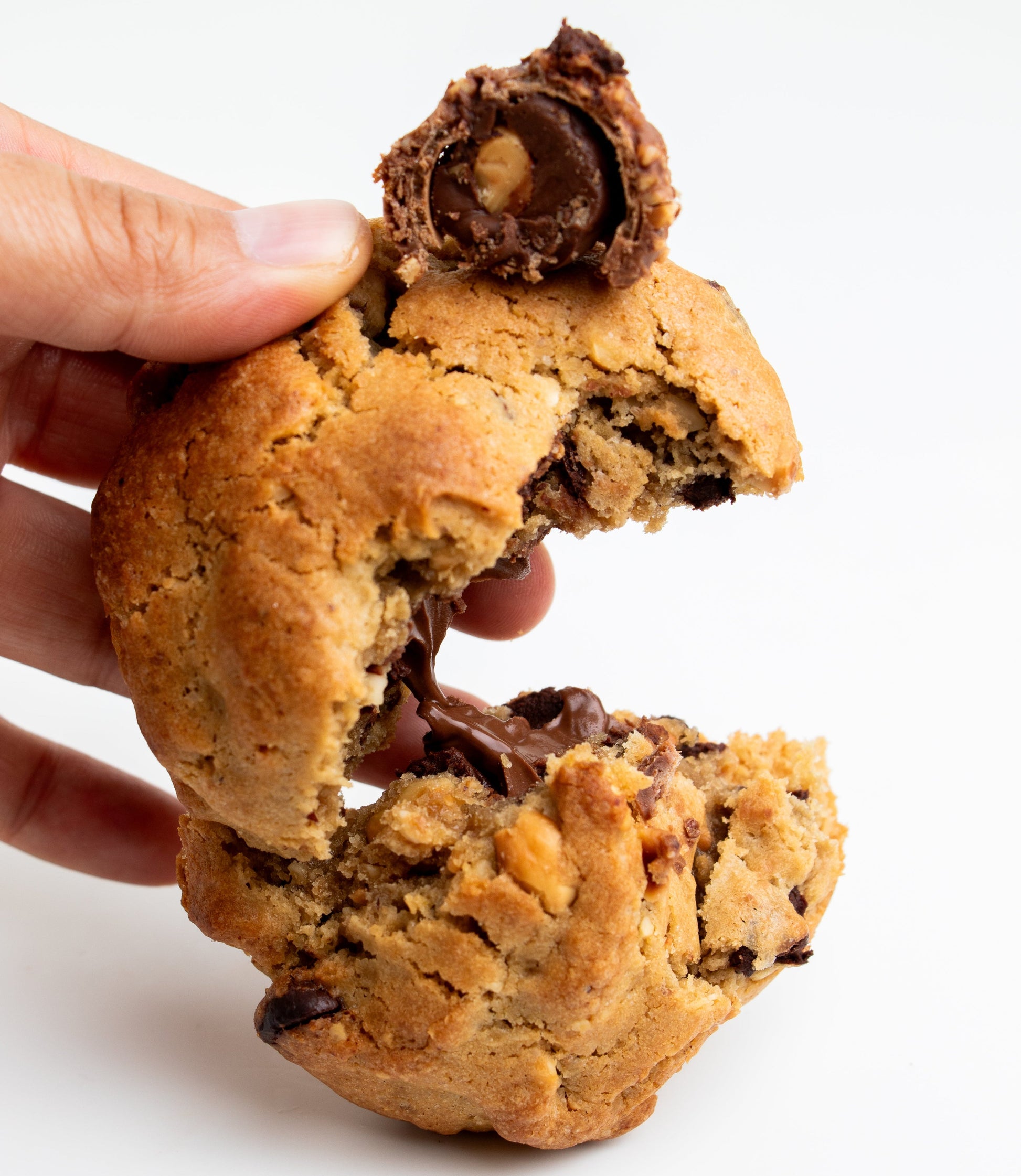 Galleta de vainilla con chispas de chocolate, avellanas tostadas y relleno de Nutella.