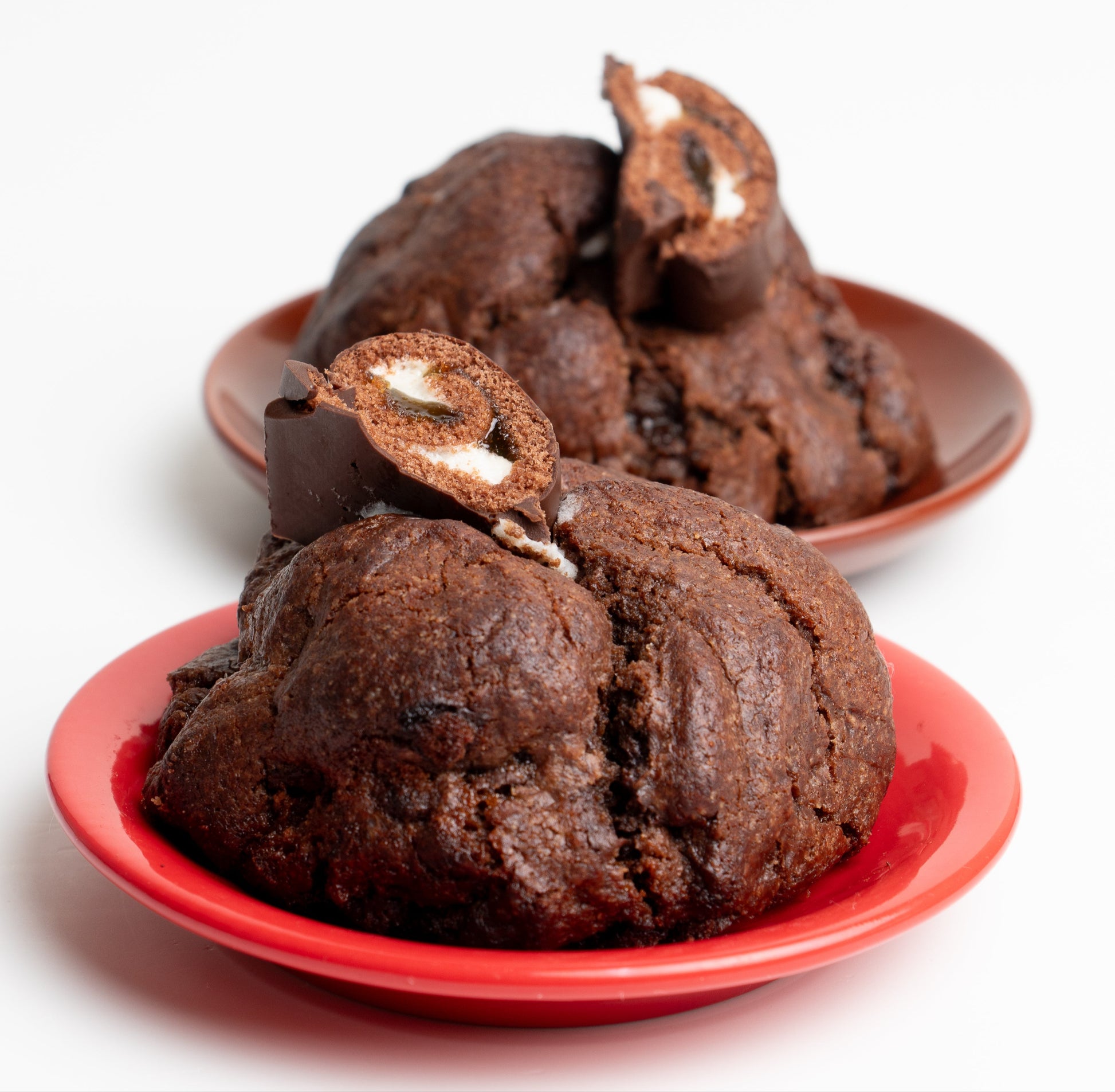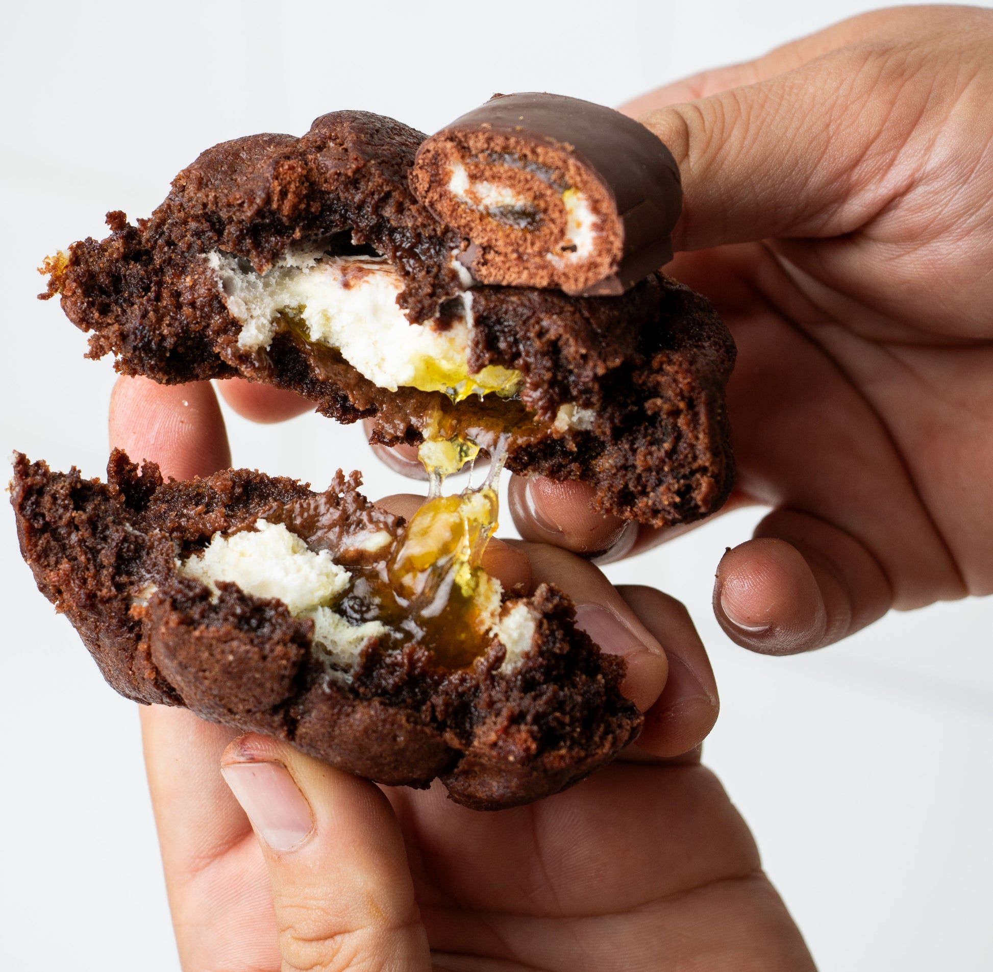 Galleta de chocolate con un relleno cremoso y piña.