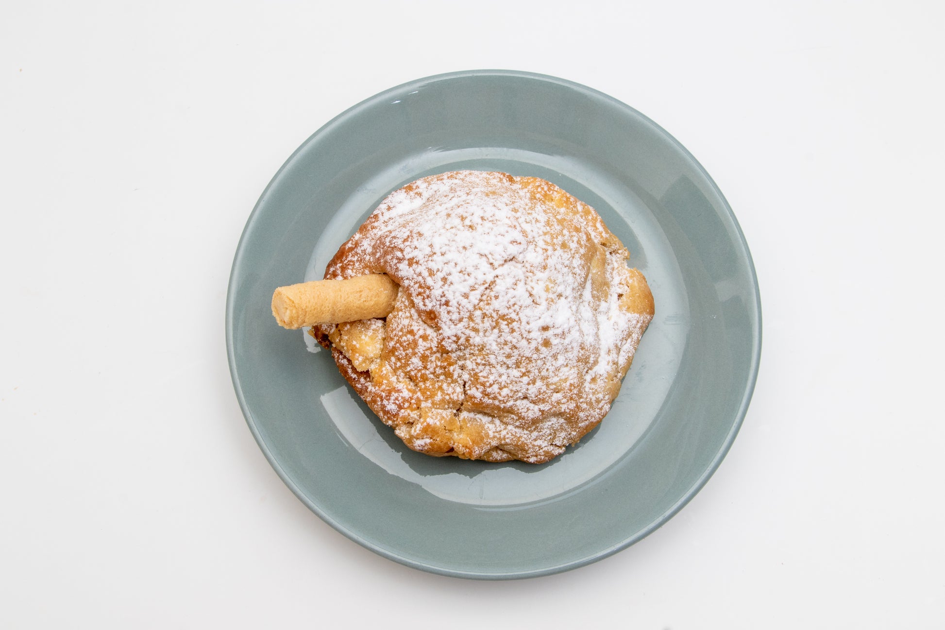 Galleta de vainilla con chispas de chocolate blanco, ralladura de limón y relleno de pay de limón.